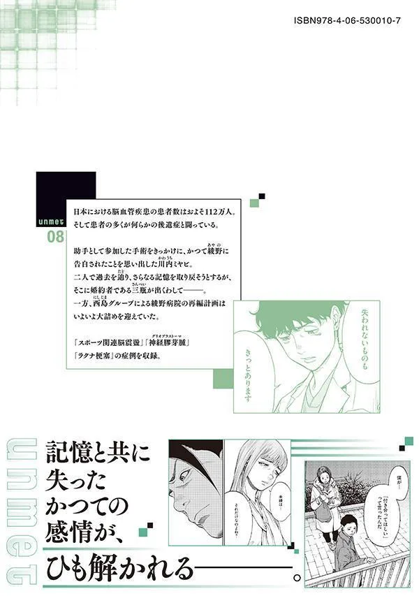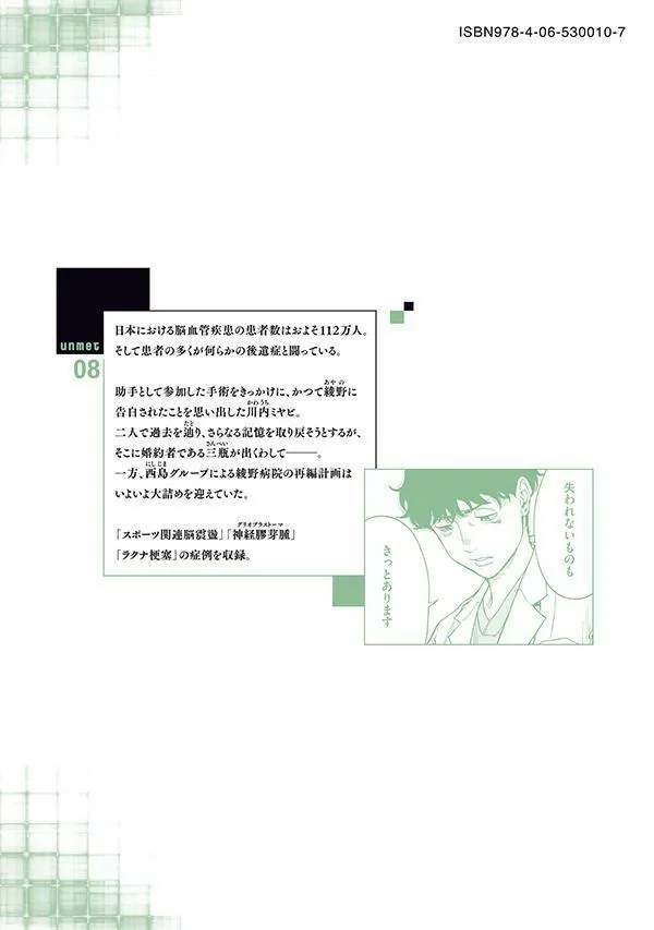 В Японии около 1,12 миллиона пациентов с цереброваскулярными заболеваниями. И многие из этих пациентов борются с последствиями. Каваучи Мияби, участвовавшая в операции в качестве ассистента, вспоминает момент, когда Аяно признался ей в своих чувствах. Они пытаются вместе восстановить прошлое и вспомнить прошлое, но затем появляется её жених, Санпей… Тем временем план группы компаний «Нисидзима» по реорганизации больницы Аяно наконец-то достигает кульминации.