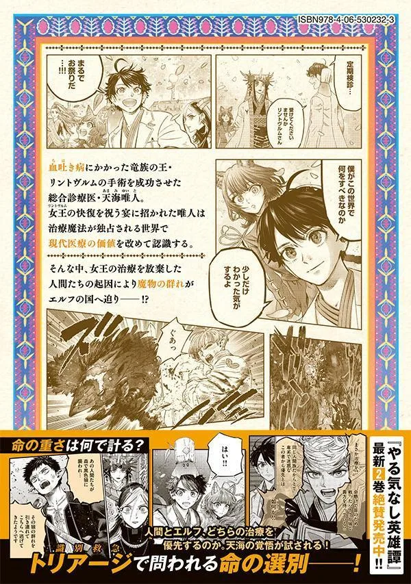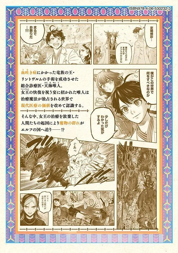 Тенкай завершил лечение Линдворма, Короля Драконов. В разгар фестиваля, посвященного его выздоровлению, группа людей, бросивших лечение на полпути и сбежавших из эльфийского королевства, подвергается преследованию «Черных Волков». Стая Черных Волков нападает на эльфийское королевство. В завязавшейся битве Сайя, одна из людей, монополизирующих медицинскую помощь в этом ином мире, получает ранение. Люди являются источником неравенства, и другие расы этим недовольны. Должен ли Тенкай лечить Сайю, понимая ее чувства? Каким будет ответ Тенкая...?