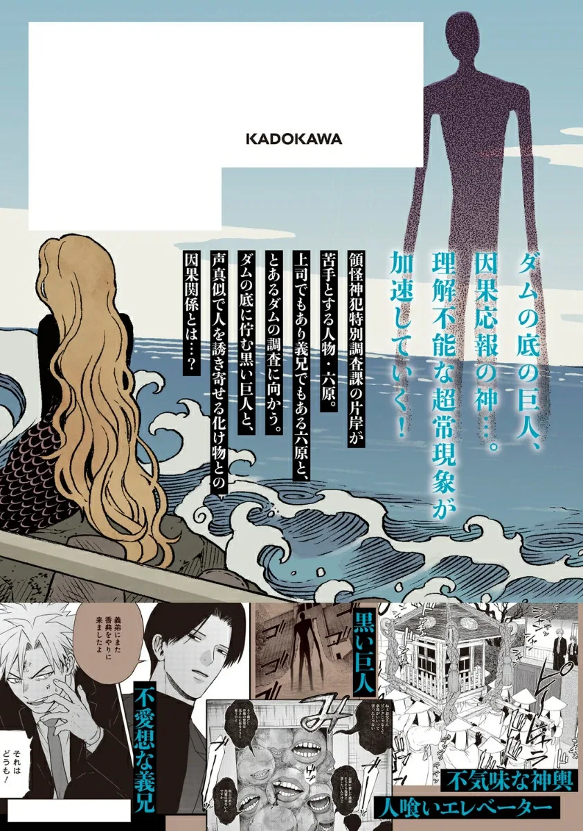 Катагиси из Специального следственного отдела по территориальным монстрам и божественным преступлениям недолюбливает Рокухару. Вместе с Рокухарой, который является одновременно его начальником и зятем, он отправляется расследовать дело на одной плотине. Какова причинно-следственная связь между черным великаном, стоящим у подножия плотины, и монстром, который заманивает людей, имитируя голоса...?