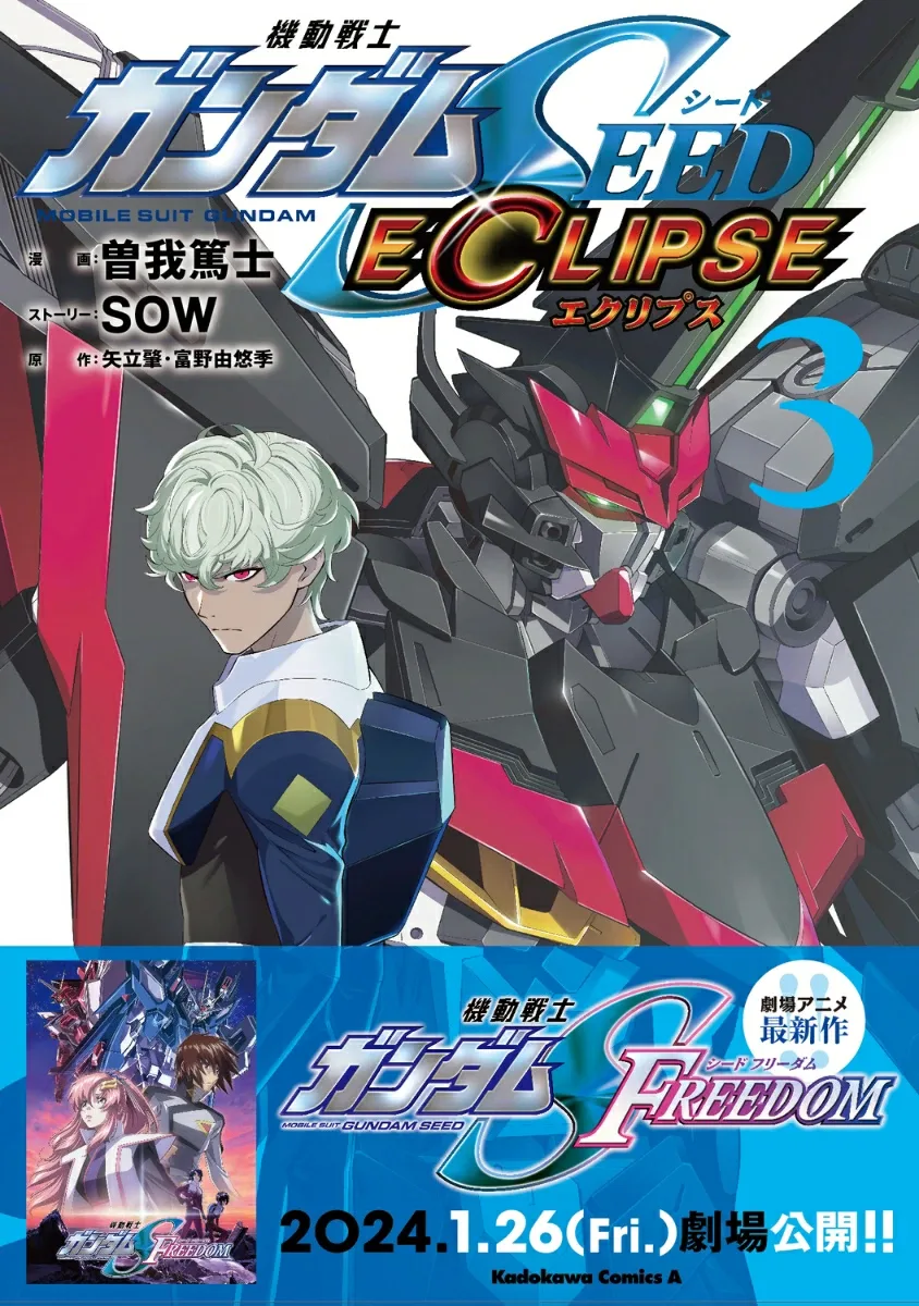 Космическая эра 72 — Секретная организация Орба, ODR, использует мобильный костюм «Эклипс», который они тайно разрабатывали, чтобы попытаться «замять» дипломатические проблемы! Третий том официальной побочной истории описывает битву между блоками «Эклипс» № 1 и № 2!