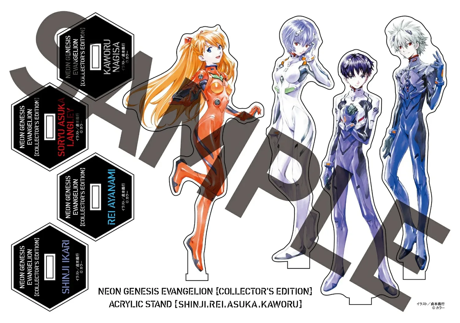 В комплект входит роскошная акриловая подставка с изображением Синдзи, Рей, Асуки и Каору, выполненная по обложке коллекционного издания!!
