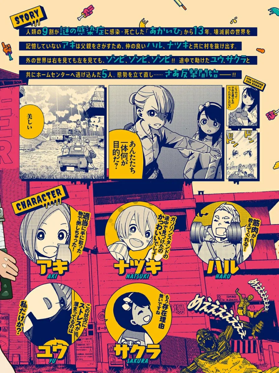 Аки, не помнящая мира до катастрофы, сбегает из деревни со своими близкими подругами Хару и Нацуки на поиски отца.