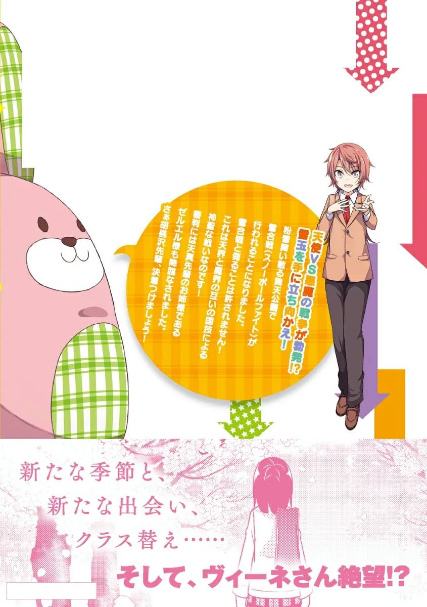 Война между ангелами и демонами наконец-то разразилась! Настало время определить победителя в снежной битве (национальном виде спорта Рая и Ада) в парке Мейтен, где падает пушистый снег. С Зеруэлем, спустившимся с Небес в качестве судьи, терпение Габриэля в замерзшем парке на пределе! В 13-м томе этой нелепой комедии об ангельской школе также появляется новый персонаж-ангел!