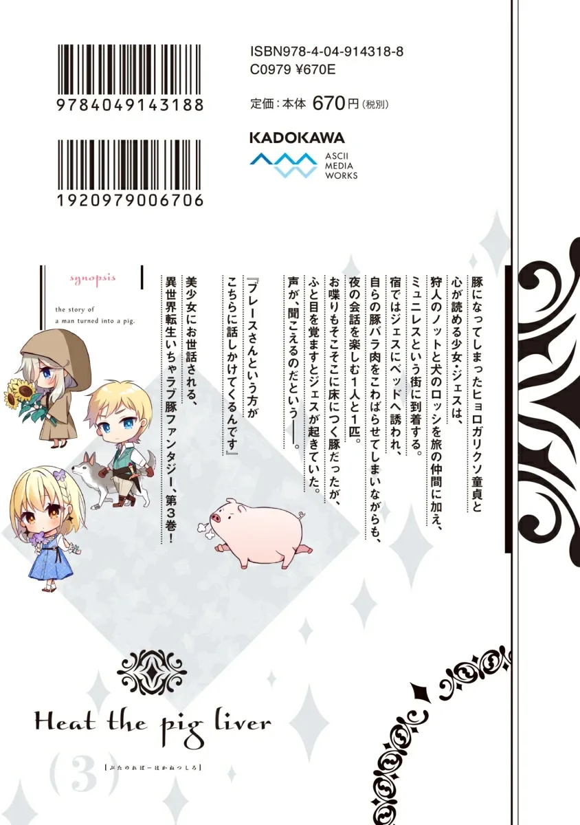 После того, как он съел сырую свиную печень и потерял сознание, он переродился в другом мире в виде свиньи!? Вместе с Джесс, доброй девушкой, умеющей читать мысли, у свиньи начинаются безудержные желания! Победитель 26-й премии Dengeki Novel Prize (Золотая награда) теперь превращается в комикс!