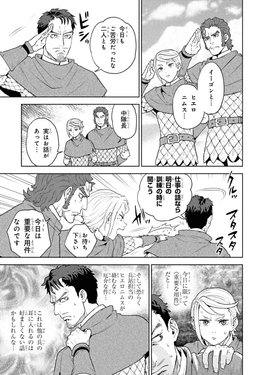 К Бертольду, капитану стражи древнего города, обращаются его подчиненные, Эгон и Иероним, с определенной просьбой. Бертольд настороженно относится к встрече двух мужчин, от которых зависит будущее стражи, но каково содержание их просьбы?