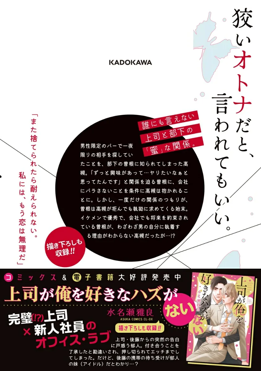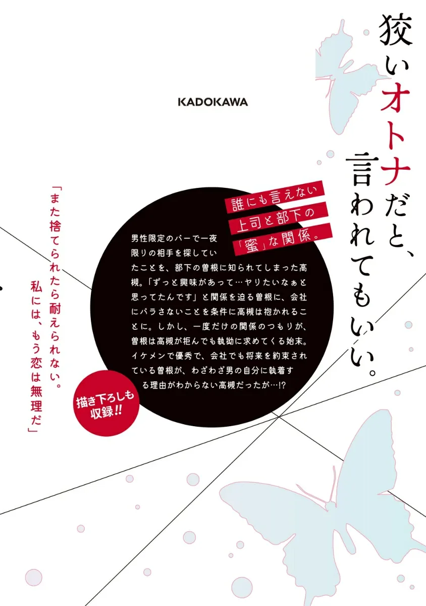 Подчиненный Такацуки, Соне, узнает, что тот искал интрижку на одну ночь в баре только для мужчин. Соне, который говорит: «Мне всегда было интересно... и я хотел этого», давит на Такацуки, чтобы тот вступил с ним в отношения, и Такацуки соглашается при условии, что Соне никому в компании не расскажет. Однако то, что должно было быть разовым случаем, превращается в настойчивые требования Соне, даже когда Такацуки отказывается. Такацуки не может понять, почему Соне, красивый, способный мужчина с многообещающим будущим в компании, так зациклен на нем, на мужчине…!?