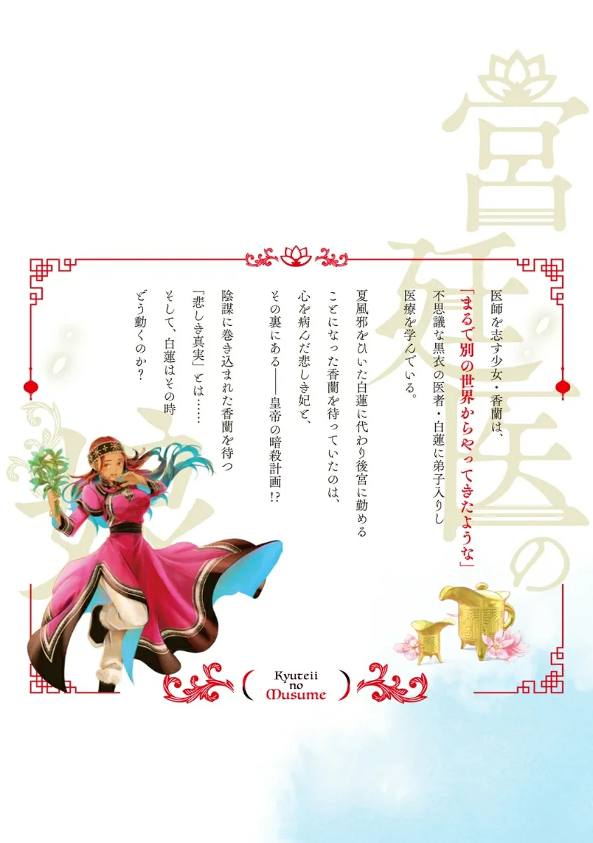 Каори, молодая девушка, мечтающая стать врачом, изучает медицину у загадочного доктора Бякурена в черном. Какая «печальная правда» ждет Каори, оказавшуюся втянутой в интриги, бушующие в императорском гареме...? И как поступит Бякурен? История императорского гарема достигает своей кульминации!