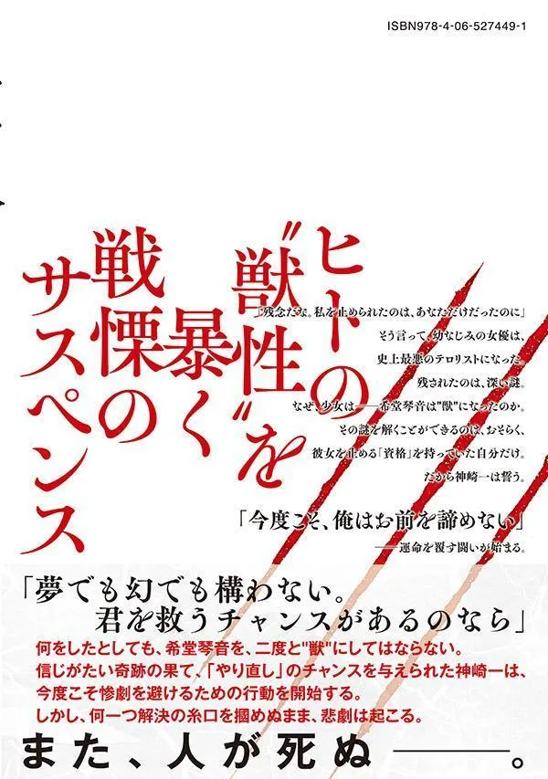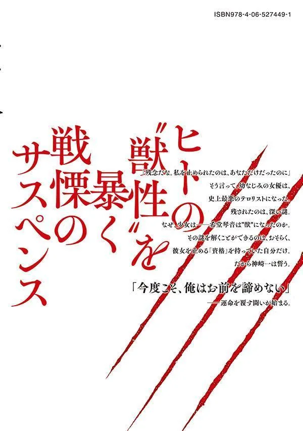 «Какая жалость. Ты был единственным, кто мог меня остановить», — сказала подруга детства, актриса, прежде чем стать худшим террористом в истории. Остается лишь глубокая загадка. Почему девушка — Кидо Котоне — превратилась в зверя? Возможно, только он, обладавший «квалификацией», чтобы остановить ее, сможет разгадать эту тайну. Поэтому Кандзаки Ичи клянется: «На этот раз я не сдамся».