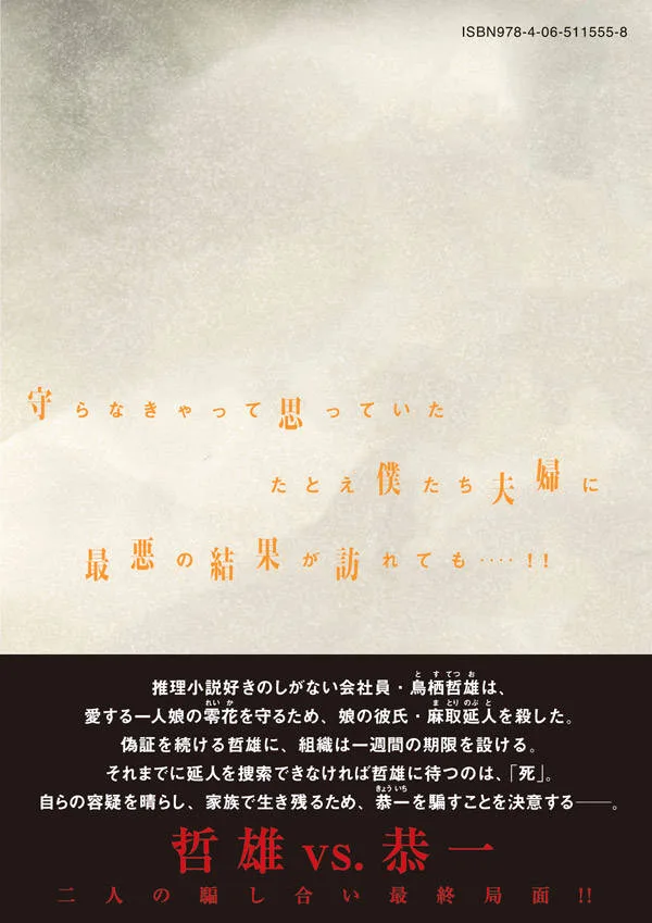 Тэцуо Тосу, обычный офисный работник, обожающий детективные романы, убил парня своей дочери, Нобуто Асатори. Организация дает Тэцуо, который продолжает лгать, неделю на поиски. Если он не найдет Нобуто к этому времени, его ждет смерть. Чтобы очистить свое имя и обеспечить выживание своей семьи, он решает обмануть Кёити. Тэцуо против Кёити, финальный этап их битвы умов!!
