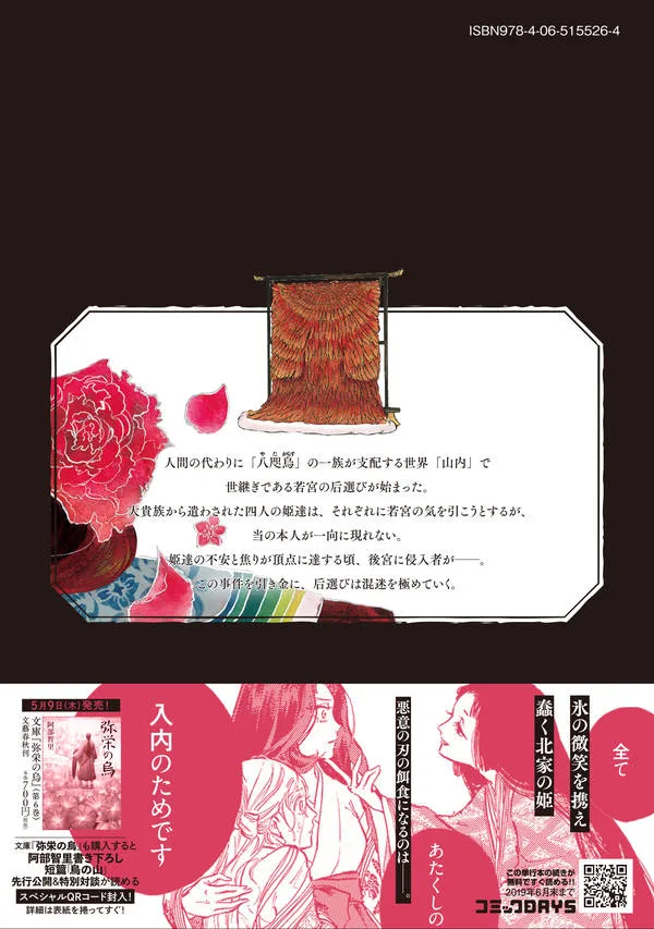 Суперпопулярная японская фэнтезийная комикс-адаптация серии, разошедшаяся тиражом более 1,5 миллиона экземпляров и ставшая самой молодой обладательницей премии Мацумото Сэйтё в истории. В мире Ямаучи, которым правит клан Ятагарасу, а не люди, начался выбор наложницы для молодого принца, наследника престола. Четыре принцессы, посланные высокопоставленными дворянами, пытаются завоевать расположение принца, но он сам не появляется. Как раз когда тревога и нетерпение принцесс достигают своего пика, во дворец проникает незваный гость… Этот инцидент запускает хаотичную эскалацию процесса выбора наложницы.