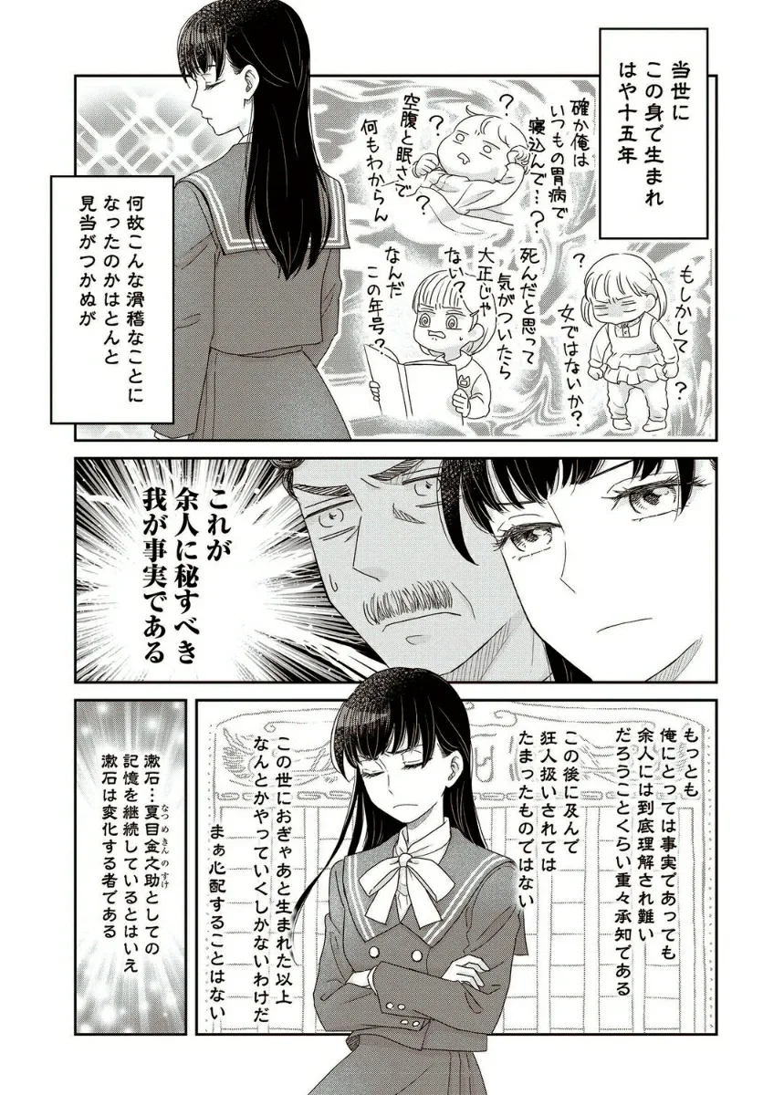 Сто лет спустя после своей смерти Нацумэ Сосэки перерождается в современной Японии в качестве старшеклассницы по имени Асахина Рион, которая растет здоровой.
