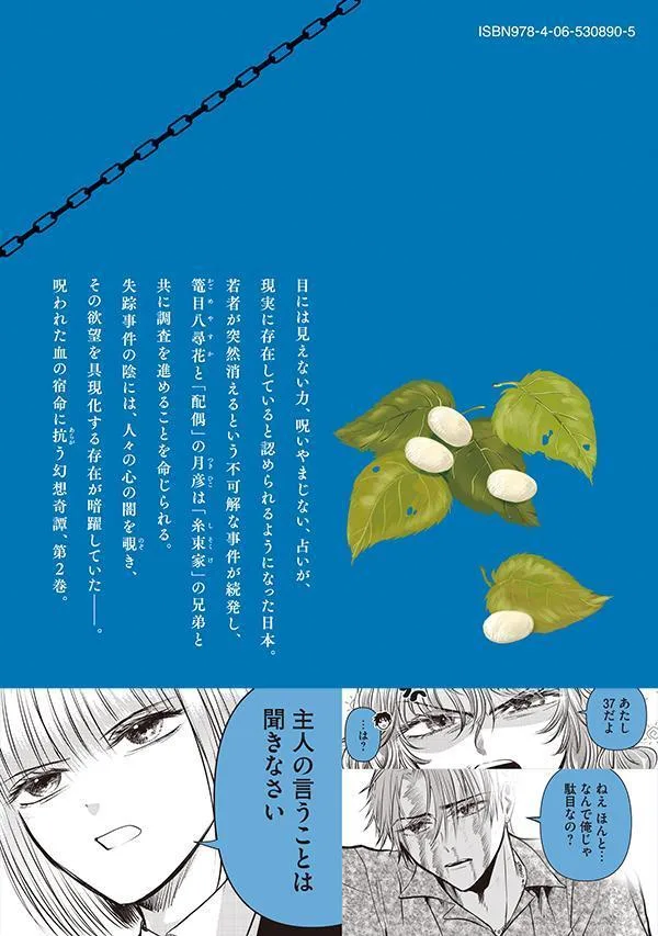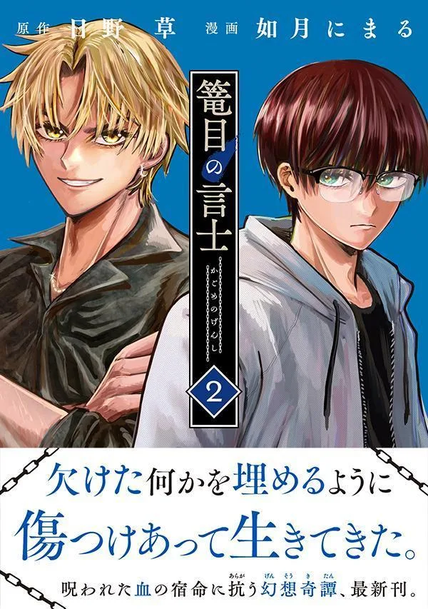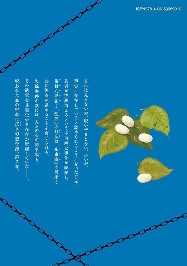 На Цукихико нападает Аясэ (Итоцука) Масато, одержимый Яхиро Ханой, главой семьи Кагомэ. Масато отвергает Цукихико, живущего в другом мире, связанном с ними кровными узами, и обрушивает на него беспощадную атаку. Столкнувшись с подавляющей силой Масато, решимость Цукихико подвергается испытанию в этой отчаянной ситуации! Второй том этой фантастической истории о противостоянии проклятой судьбе крови.