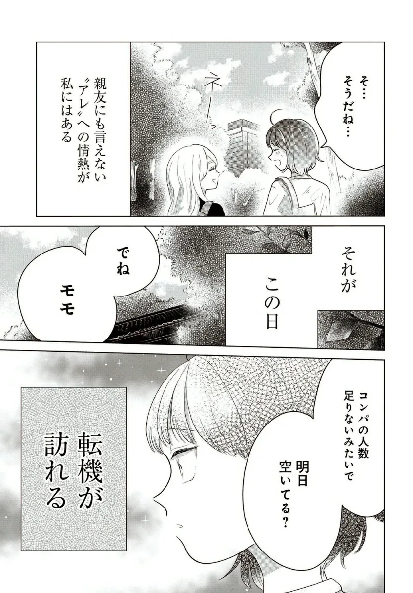 Момо — студентка колледжа, выросшая в школе для девочек и до сих пор девственница. Но у неё есть страсть к «этому», о которой она никому не может рассказать...! Однажды Момо получает свой первый шанс на групповое свидание вслепую, но её партнёром оказывается Изумо, красивый ловец женщин...!