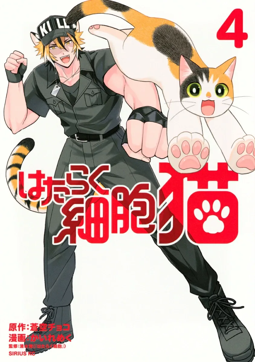 В 4-м томе рассматриваются такие темы, как случайное проглатывание инородных предметов, кошачий грипп (хламидиоз), ночные спортивные соревнования, кошачья мята и корм для домашних животных! Он полон важной информации и ситуаций, понятных владельцам кошек. Последняя часть серии-спин-оффа «Клетки за работой!» — обязательное чтение для любителей кошек!