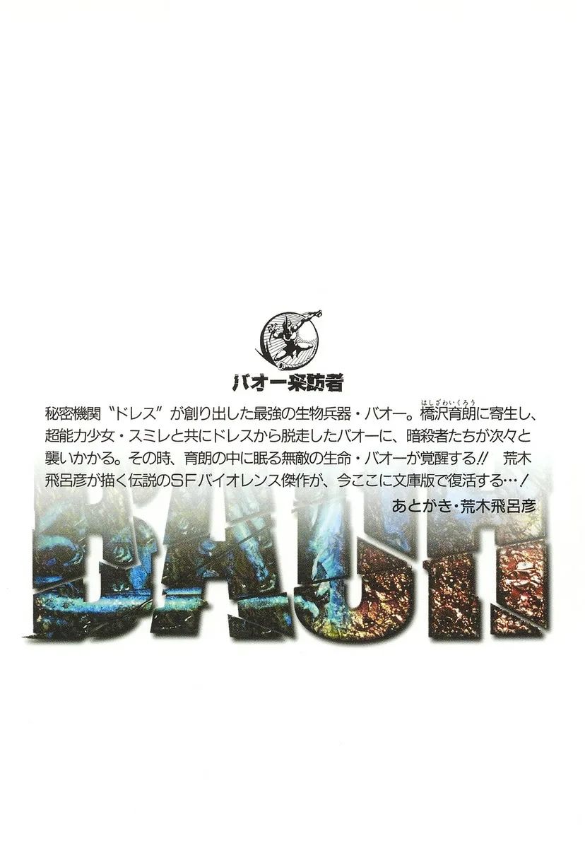 Бао, сильнейшее биологическое оружие, созданное секретной организацией «Dress», паразитирует на Икуро Хасидзаве и сбегает из «Dress» вместе с девушкой-экстрасенсом Сумире. Убийцы нападают на Бао один за другим. В этот момент Бао, непобедимая форма жизни, спящая внутри Икуро, пробуждается!! Легендарный научно-фантастический шедевр Хирохико Араки о насилии возрождается здесь в мягкой обложке…!