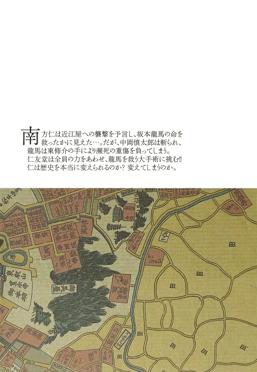 Минаката Джин предсказал нападение на Омию и, казалось, спас жизнь Сакамото Рёмы... Но Накаока Синтаро получает ранение, а Хигаси Шусуке тяжело ранит Рёму. Вся команда Дзиньюдо объединяет свои силы, чтобы попытаться провести сложную операцию по спасению Рёмы!! Сможет ли Джин действительно изменить историю? Или он её изменит?