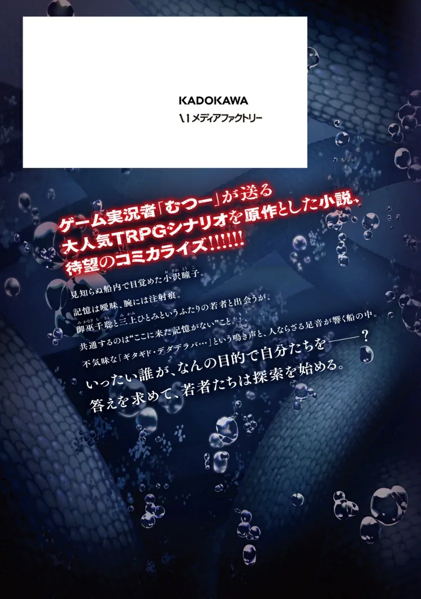 Роман, основанный на популярном сценарии настольной ролевой игры, созданный игровым комментатором Муцу, наконец-то получит свою долгожданную комикс-адаптацию!! Закрытый корабль, потерянные воспоминания. Под угрозой со стороны «аномалий» начинается безнадежное исследование молодых людей──.