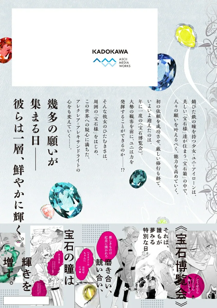 Юни-Айлон, девушка с глазами цвета ржавого железа, оттачивает свои способности, чтобы исполнять желания людей в «Шкатулке драгоценностей», где обитают прекрасные «Боги драгоценностей».