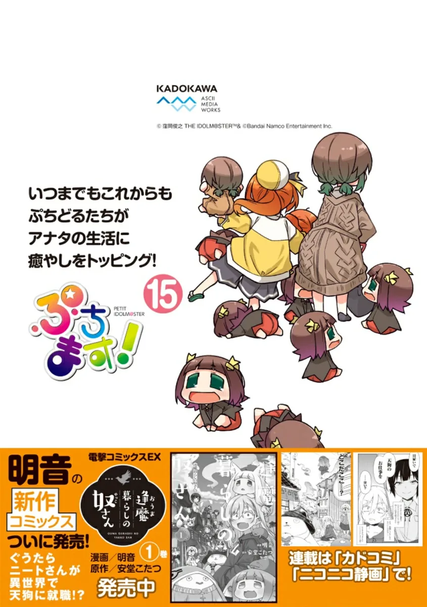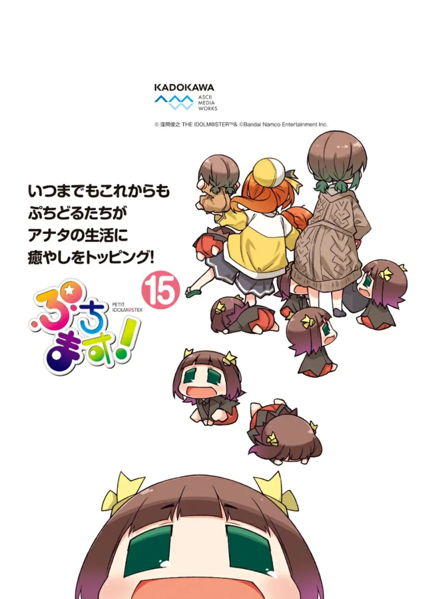 15-й том повседневной 4-панельной манги об айдолах из 765 Production и загадочных, странно милых существах «Пучидолах», которые чем-то на них похожи!