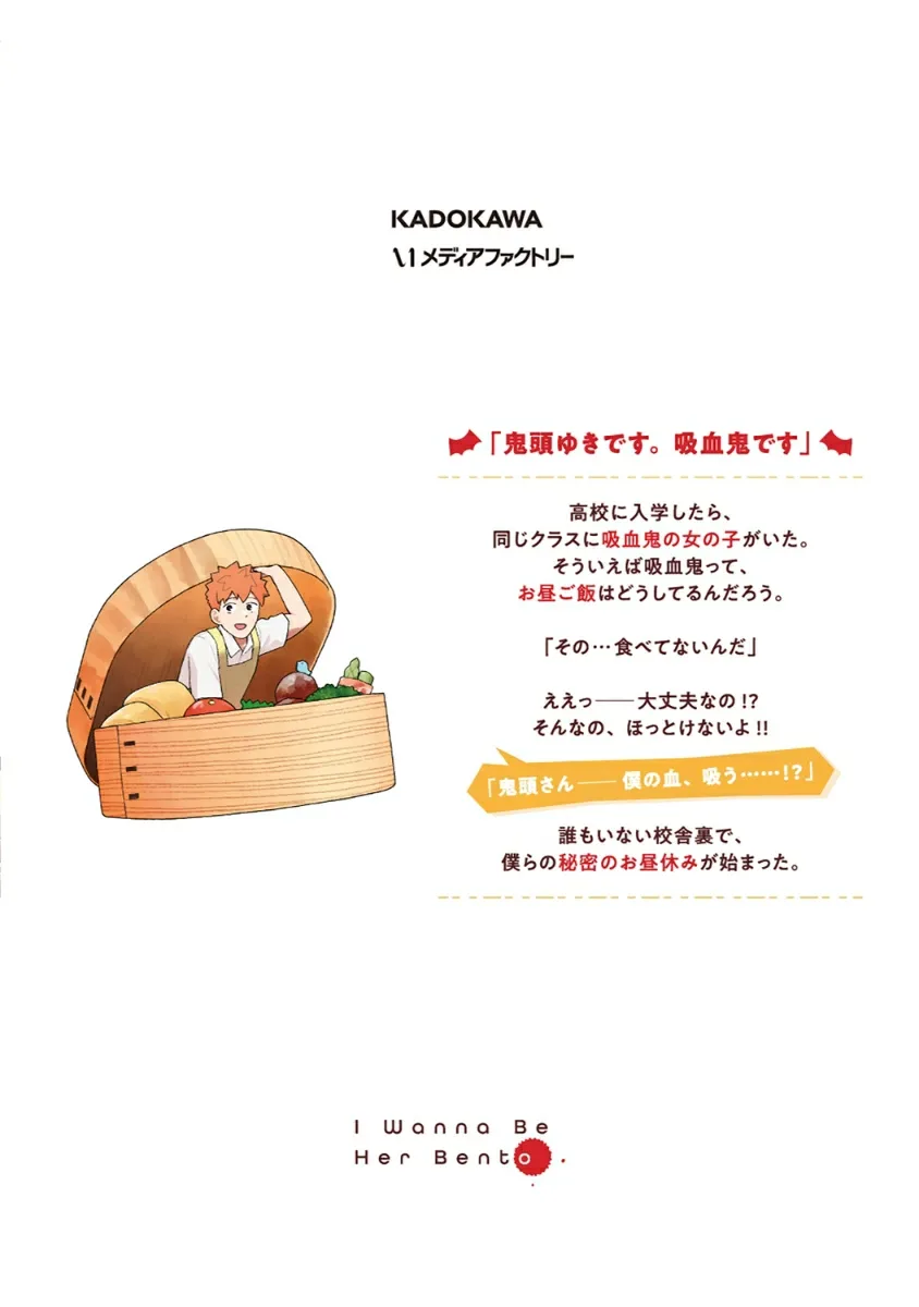 "Я Кито Юки. Я вампир. Приятно познакомиться." — Когда я поступил в старшую школу, в моем классе была девушка-вампир. Интересно, что вампиры едят на обед? Наш тайный обеденный перерыв начинался за заброшенным зданием школы.