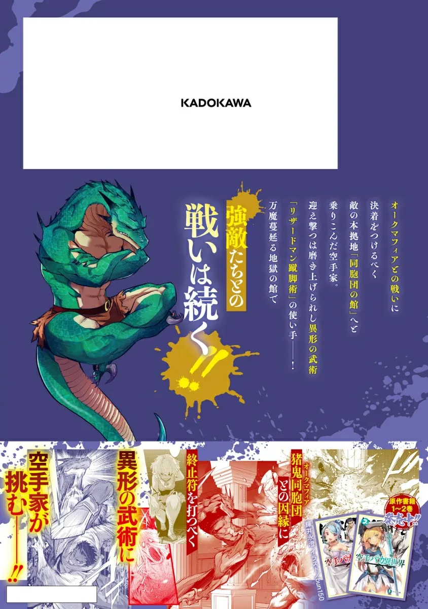 Группа каратистов проникает в особняк Соратников, чтобы свести счеты с мафией орков. Удары ногами ящеролюдей! Алхимические техники убийства полудемонов! Странные техники сталкиваются с карате!!