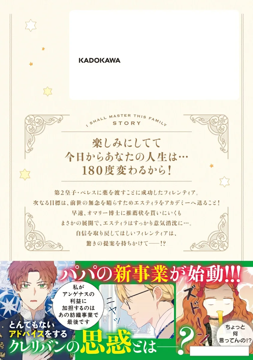 Флорентия успешно доставила лекарство второму принцу, Пересу. Ее следующая цель — отправить Эстилу в Академию, чтобы отомстить за сожаления, которые она испытывала в прошлой жизни! Она немедленно обращается к доктору О'Мэлли за рекомендательным письмом, но неожиданный поворот событий повергает Эстилу в полное отчаяние... Желая помочь ей вернуть уверенность в себе, Флорентия делает неожиданное предложение…!?
