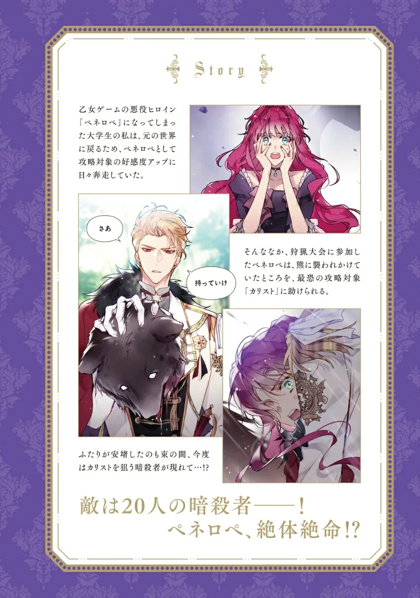 Пенелопа решает взяться за следующее задание: «Защитить наследного принца от ассасинов!» Она расстреливает врагов одного за другим, но оказывается зажатой на скале и падает вместе с Каллисто. Очнувшись, она обнаруживает себя в тускло освещенной пещере. Каллисто рассказывает Пенелопе, дрожащей от страха смерти, о своем трагическом прошлом… Шестой том этой опасной романтической фэнтезийной игры!!