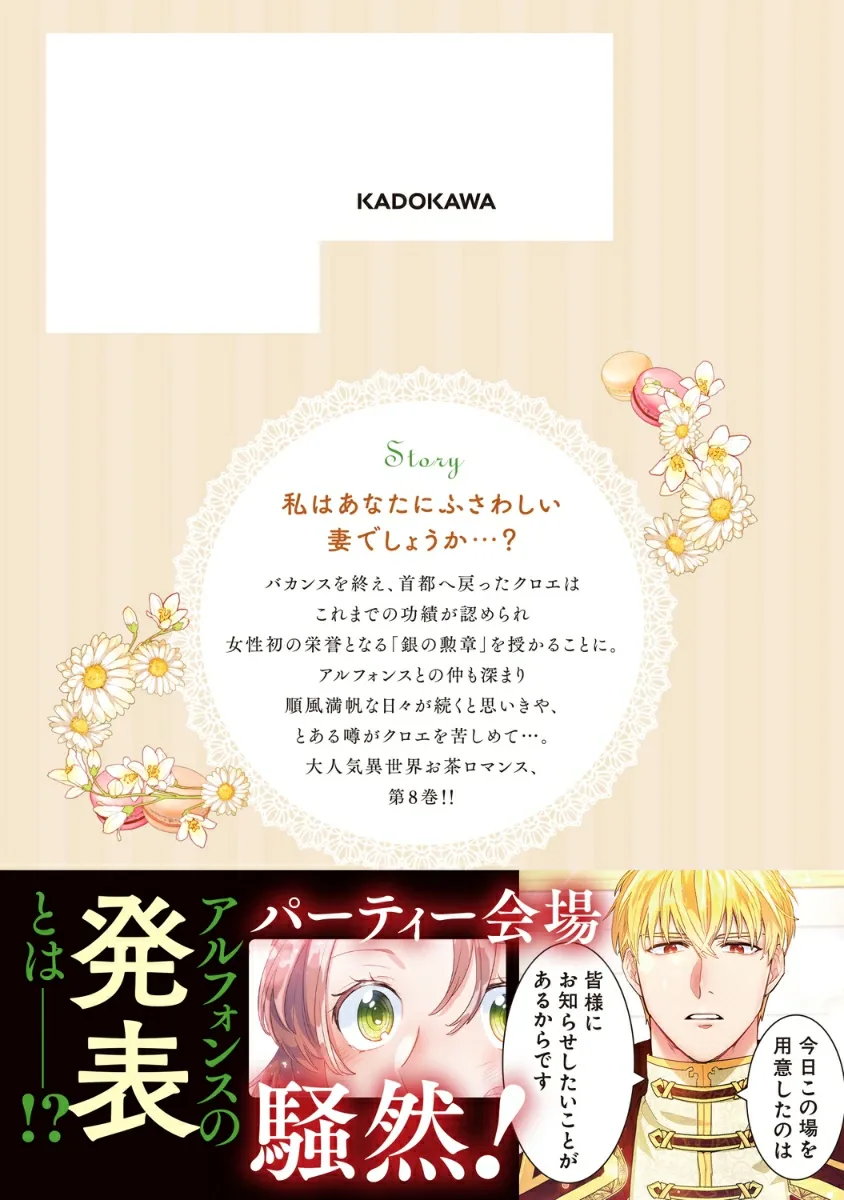Вернувшись в столицу из отпуска, Хлоя получает «Серебряную медаль» — первую подобную награду для женщины в знак признания ее прошлых достижений. Ее отношения с Альфонсом углубляются, и кажется, что дни будут идти гладко, но один слух начинает мучить Хлою… Восьмой том невероятно популярного романа о чае в потустороннем мире!