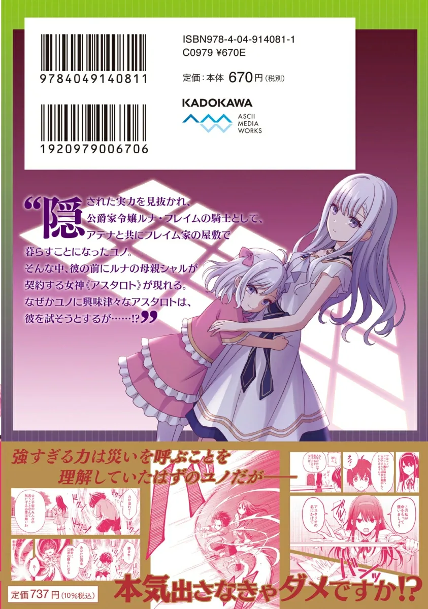 Юно, чьи скрытые способности были обнаружены, теперь живет в особняке семьи Флейм с Афиной в качестве рыцаря дочери герцога, Луны Флейм. Тем временем перед ним появляется Астарот, богиня, с которой мать Луны, Шал, заключила контракт. По какой-то причине Астарот очень заинтересована в Юно и пытается испытать его...!? Второй том этой классической школьной фэнтезийной серии о непостижимой силе!