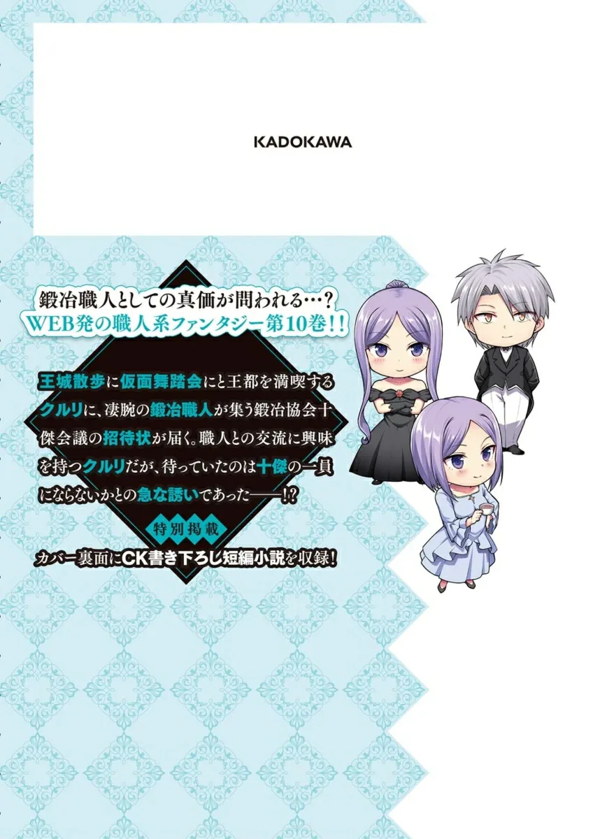 Пока Курури наслаждается королевской столицей, прогуливаясь по замку и посещая маскарадный бал, она получает приглашение на собрание Десяти Великих Кузнецов из Ассоциации Кузнецов, где собираются высококвалифицированные кузнецы. Курури заинтересована в общении с мастерами, но ее ждет неожиданное приглашение стать членом Десяти Великих Кузнецов —!?