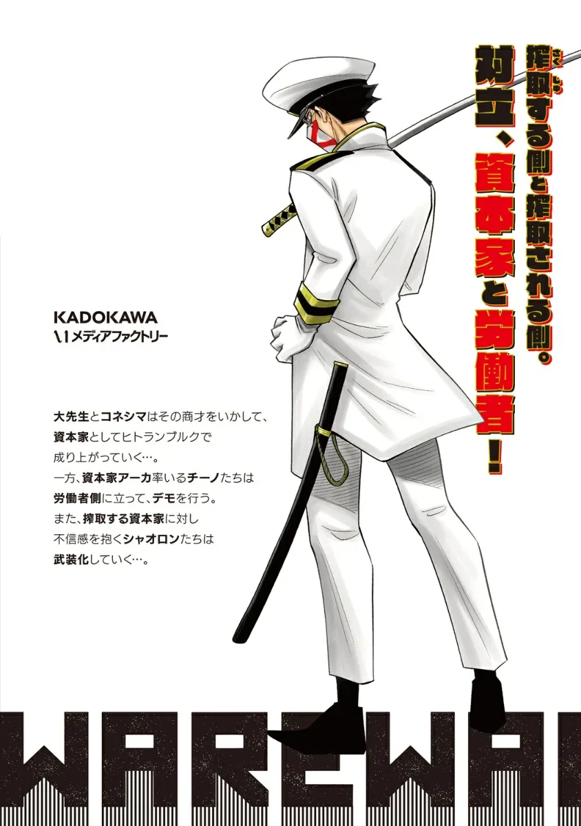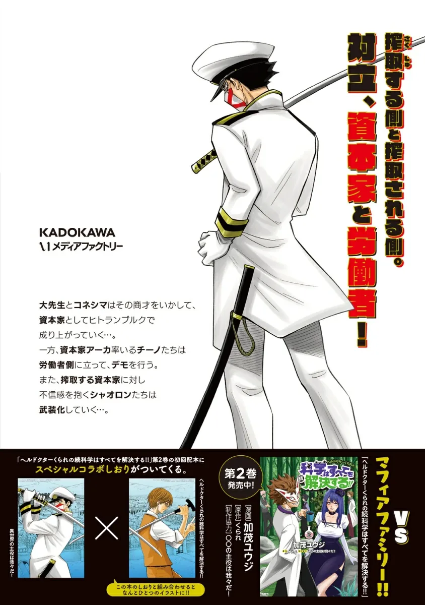 Дайки-сэнсэй и Конешима используют свою деловую хватку, чтобы прийти к власти в качестве капиталистов в Хитланбурге... Тем временем Арка и его группа встают на сторону рабочих и проводят демонстрации. Более того, Шаолун и его группа, которые крайне подозрительно относятся к эксплуататорским капиталистам, начинают вооружаться...