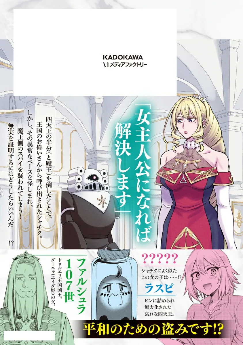 Салэримен Шачику, призванный в другой мир, за несколько дней уже наполовину уничтожил Четырех Небесных Королей. Однако высшие эшелоны власти подозревают Шачику, который так быстро победил Четырех Небесных Королей — которых они не могли победить много лет — в том, что он шпион Короля Демонов!?