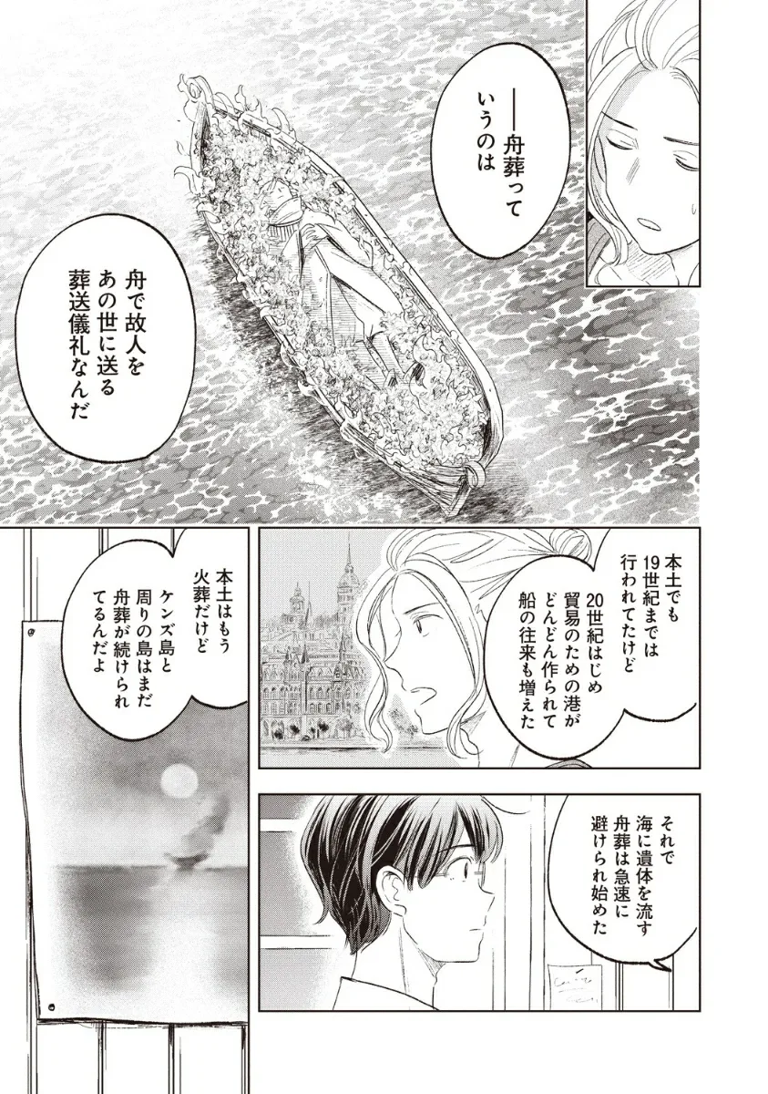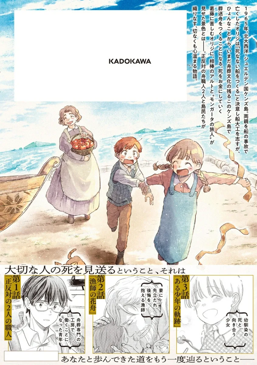 Ориги, потерявший родителей в кораблекрушении, решает стать кораблестроителем и «построить корабль, который никогда не умрет», но по случайности он оказывается на острове Кенс, где до сих пор существует обычай захоронения кораблей, строя погребальную лодку.
