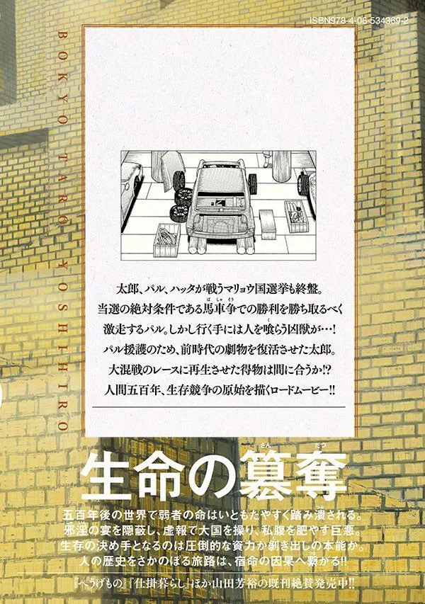Ёсихиро Ямада, изобразивший корни «культуры» 500 лет назад в шедевральной эпической манге «Хёгэ Моно», теперь использует другой подход в «Бокё Таро», изображая «цивилизацию» 500 лет спустя!