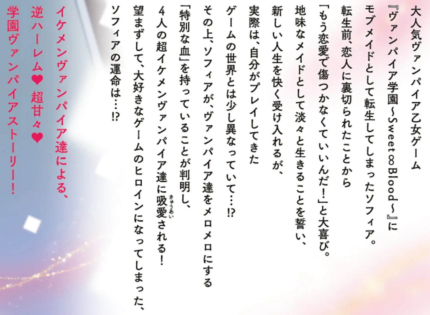 София переродилась в горничную в невероятно популярной вампирской отомэ-игре «Vampire Academy ~Sweet ∞Blood~».