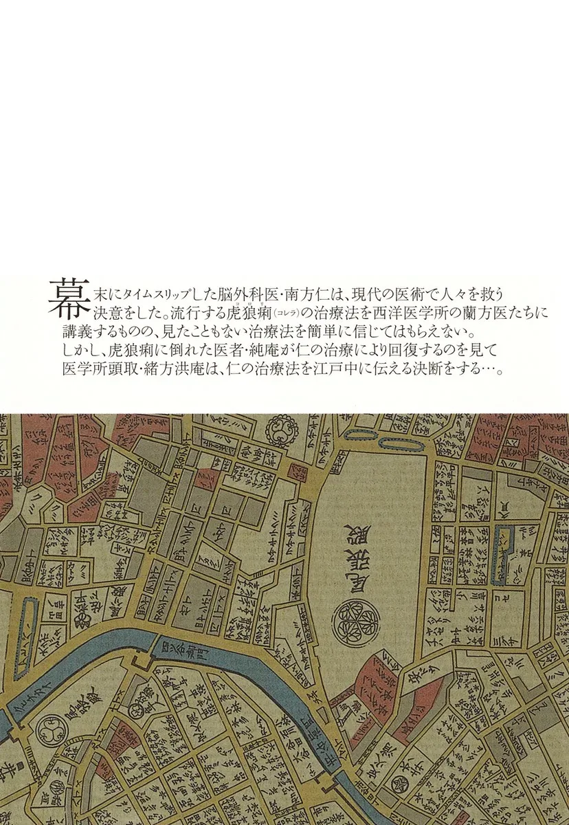 Дзин Минаката, нейрохирург, переместившийся во времени в конец эпохи Эдо, решает спасать людей с помощью современных медицинских методов. Он читает лекции врачам западной медицинской школы о лечении свирепствующей холеры, но они не сразу верят его методу лечения, которого никогда раньше не видели. Однако, увидев, как доктор Джунъань, заболевший холерой, выздоравливает благодаря лечению Дзина, глава медицинской школы, Коан Огата, решает распространить метод лечения Дзина по всему Эдо...