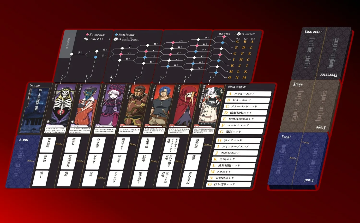 Создайте новую историю для Overlord. Случайным образом выберите персонажа, который будет «главным героем», из карточек персонажей и по очереди переворачивайте карточки. В зависимости от содержимого перевернутой карточки произойдут различные события, так что создайте свою собственную историю!Введение в содержание (от JPRO)