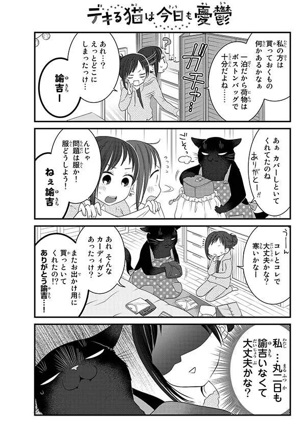 Повседневный комикс из четырех панелей, короткометражная комедия, рассказывающая о счастливой жизни 28-летней офисной работницы Саку Фукудзавы, чья способность вести нормальную жизнь вне работы катастрофически ограничена, и Юкичи, большого кота, который является универсальным помощником по дому (!) и которого она спасла, когда он был еще котенком на грани замерзания. В настоящее время комикс с большим успехом публикуется на Nico Nico Seiga и pixiv Comic!
