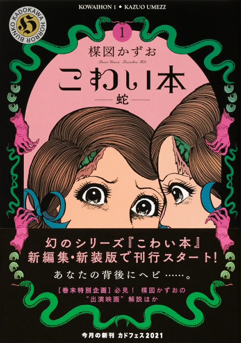 Сестры Нумата, жившие счастливо, внезапно столкнулись с трагедией. Старшая сестра заболела неизвестной болезнью, парализовавшей ее конечности. Младшая сестра заботливо ухаживала за сестрой, но ее странное поведение вызвало подозрения, и она стала бояться, что сестра на самом деле змея, пытающаяся ее убить. В этот том входит рассказ «Чешуйчатое лицо», в котором возникает чувство тревоги, а также три других рассказа ужасов о змеях, включая «Девушка-змея и беловолосый демон» и «Когда рот раздваивается до ушей», по которым были сняты фильмы. Роскошные дополнительные материалы в конце тома, включая недавно написанное интервью с автором, также обязательны к прочтению!