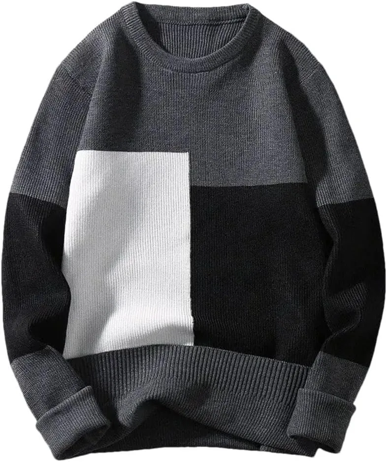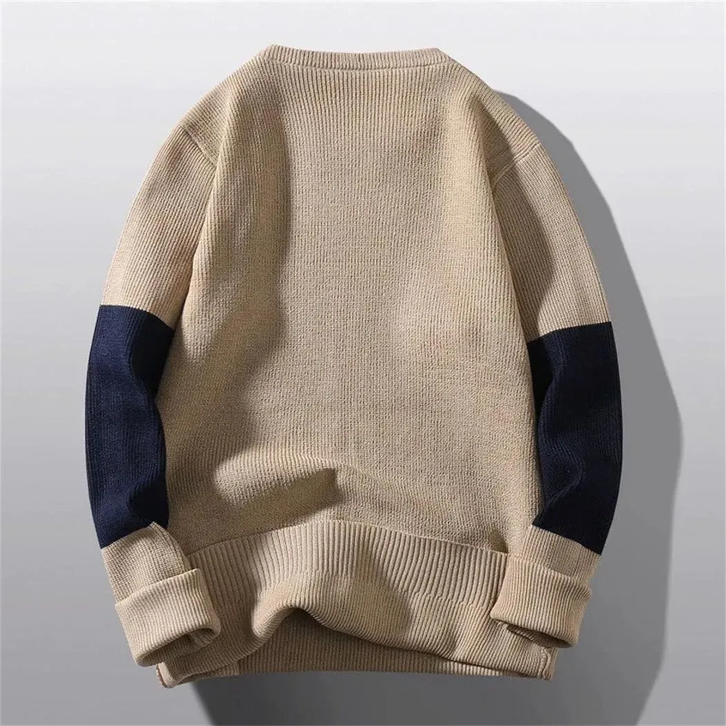 мужской вязаный свитер, пуловер для мужчин, теплый зимний свитер, повседневная вязаная одежда, вязаный топ с длинным рукавом, мужской свитер в стиле стритвеар, пуловер в стиле пэчворк, свитер с воротником-стойкой, свитер крупной вязки, мужской топ осенне-зимней вязки, свитер свободного кроя, модный мужской джемпер, свитер с круглым вырезом
