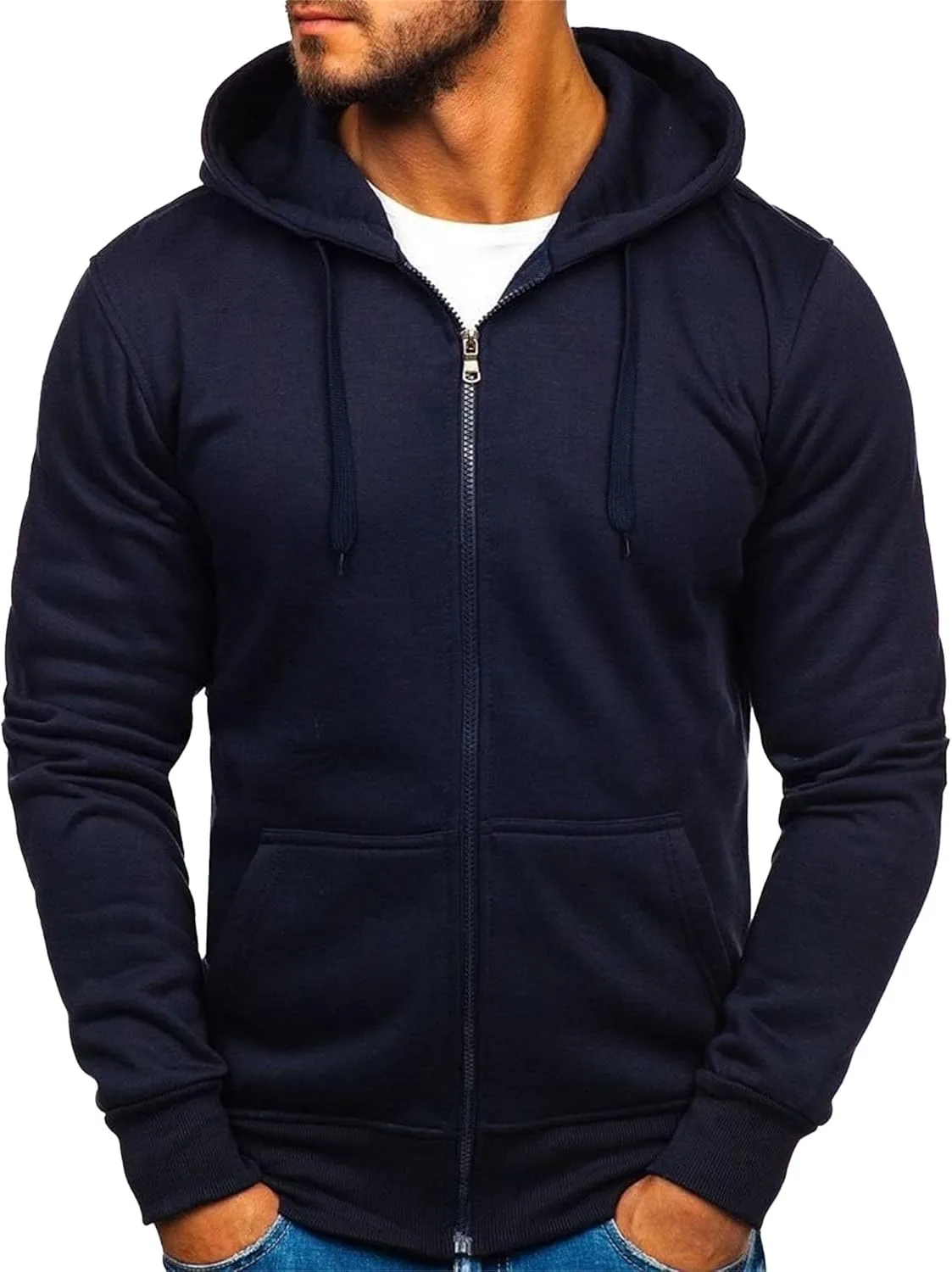 【Дезигн】Мужская зимняя толстовка на молнии с капюшоном имеет стандартный крой и все классические детали. Полная молния, молния на четверть длины, цветовые блоки, однотонный цвет, воротник-стойка, круглый вырез, капюшон, длинные рукава, карман-кенгуру, ребристые манжеты и нижний край.