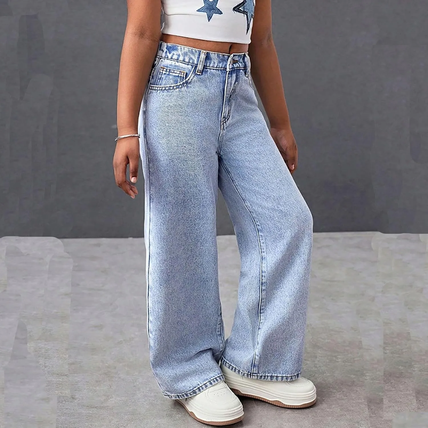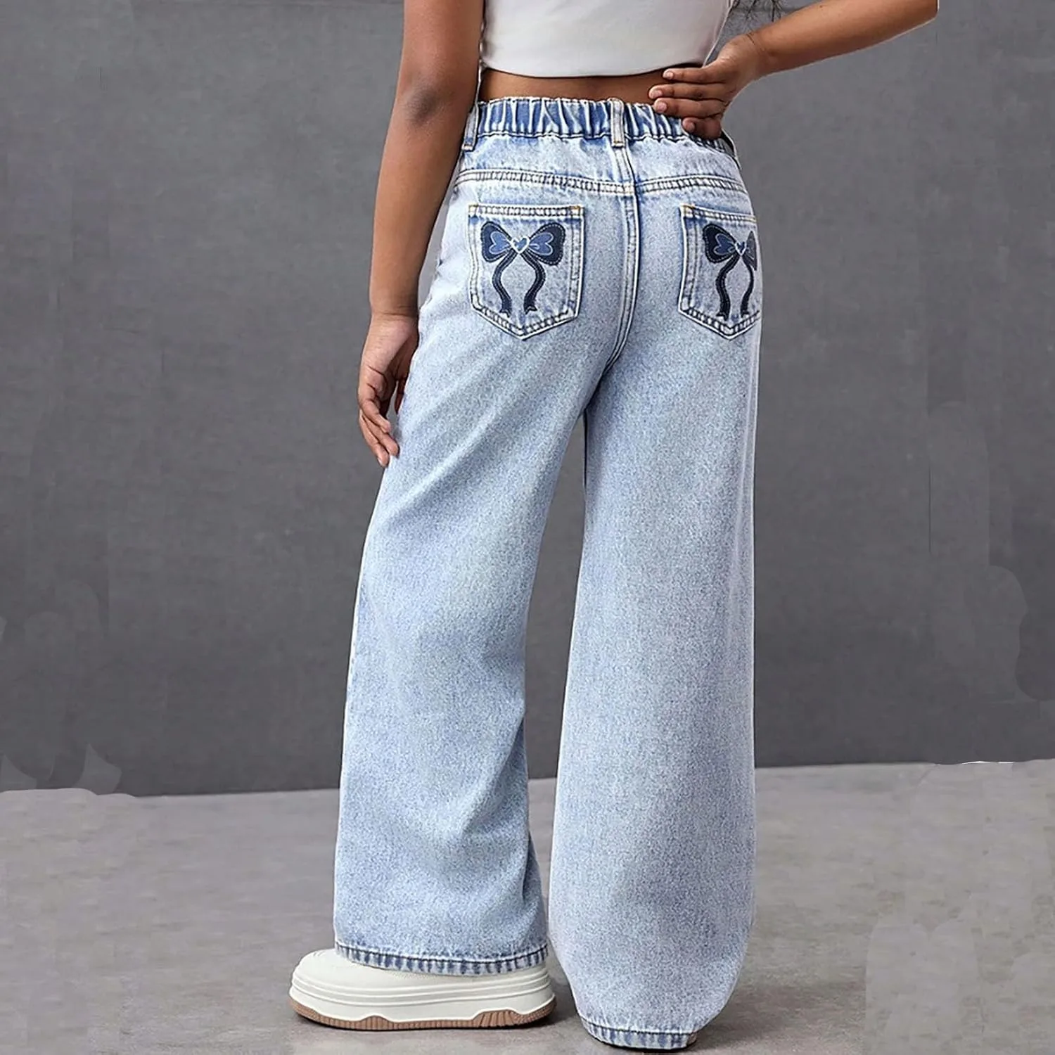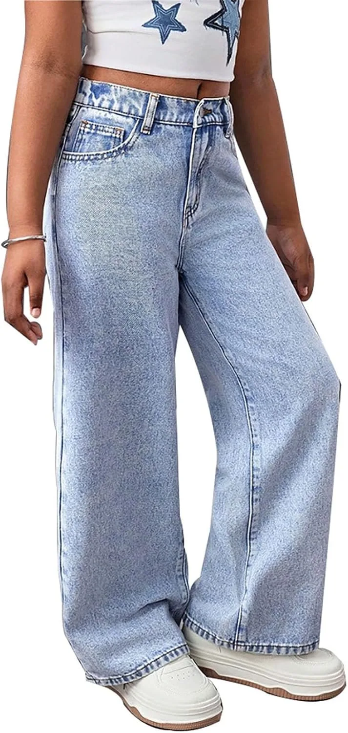 Материал: Эластичная джинсовая ткань с мягкой текстурой для комфорта движений. Дизайн: высокая талия и широкие штанины для создания образа в стиле стритвеар 2000-х. Особенность: Эластичный пояс позволяет легко надевать брюки без застежек. Повод: Подходит для повседневной носки, школьных экскурсий или мероприятий на выходных для подростков. Уход: Машинная стирка в холодной воде, вывернув наизнанку, сушка в сушилке при низкой температуре.