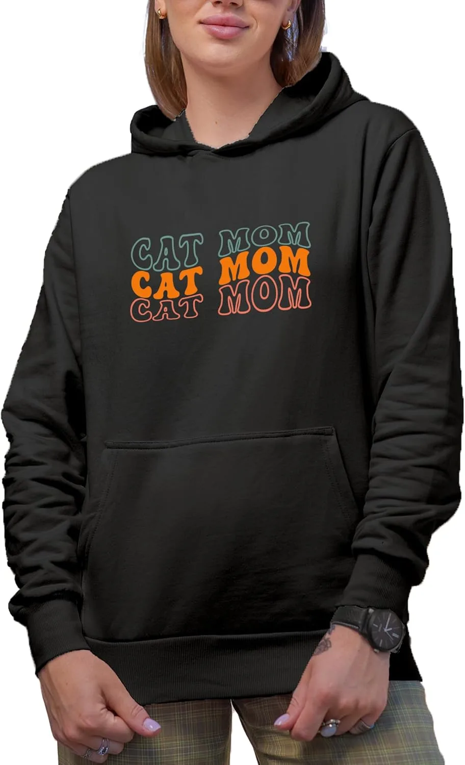 Толстовка с капюшоном Cat Mom, ретро-дизайн Make Your Mark Design