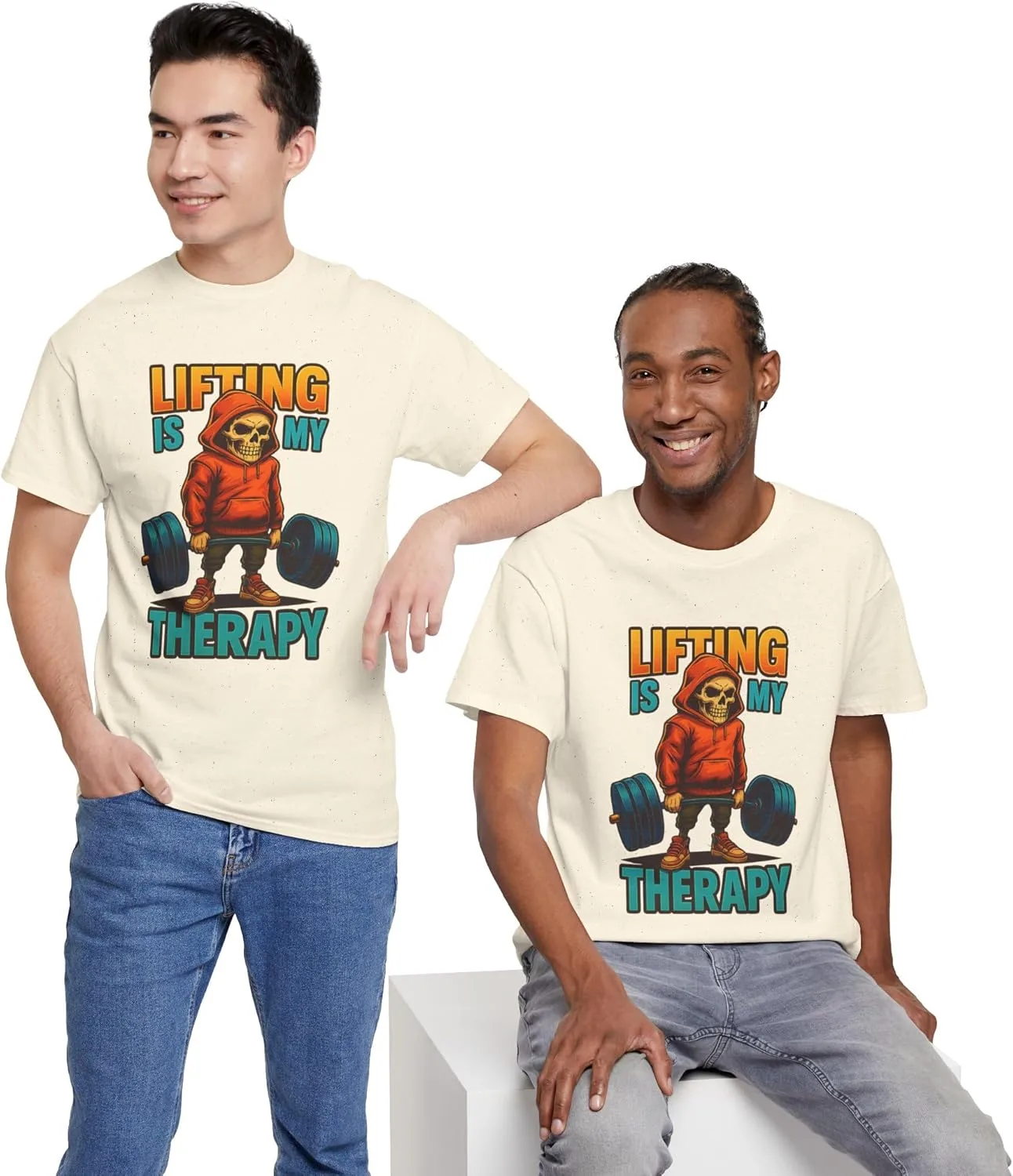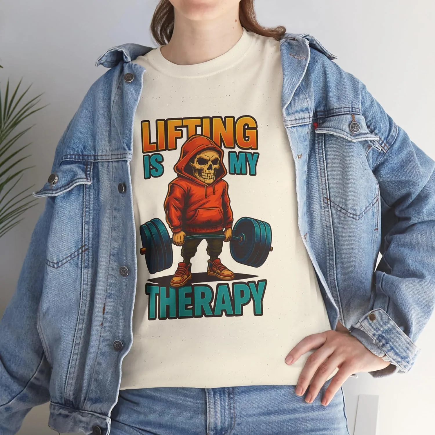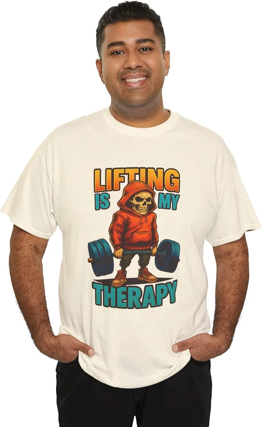 Подпитывайте свою страсть. Носите свою терапию. Ищете идеальное сочетание комфорта, позитивного настроя и мотивации к фитнесу? Футболка унисекс из плотного хлопка «Подъём тяжестей — моя терапия» — это больше, чем просто футболка, это заявление. Независимо от того, тренируетесь ли вы в спортзале, цените дисциплину или просто находите покой под нагруженной штангой, этот смелый дизайн говорит на вашем языке. Почему вам это понравится: Привлекательный рисунок черепа и капюшона, который кричит о силе. Супермягкая хлопковая ткань для комфорта в течение всего дня. Обязательный элемент гардероба для завсегдатаев спортзала, пауэрлифтеров и любителей фитнеса. Отличный подарок на день рождения, праздник или в честь нового личного рекорда! Добавьте в корзину прямо сейчас и гордо демонстрируйте свои достижения! Потому что для вас подъём тяжестей — это не просто увлечение, это терапия. Особенности изделия: - Укрепляющая тесьма на плечах для стабильности и прочности - Бесшовный дизайн для уменьшения отходов ткани - Эластичный ребристый трикотажный воротник сохраняет форму - Изготовлено из прочной, гладкой ткани для печати - Классический крой обеспечивает комфорт и аккуратный внешний вид Инструкции по уходу: - Не использовать хлор: отбеливатель при необходимости - Не гладить - Не подвергать химчистке - Машинная стирка: холодная (макс. 30°C или 90°F) - Сушка в сушильной машине: низкая температура