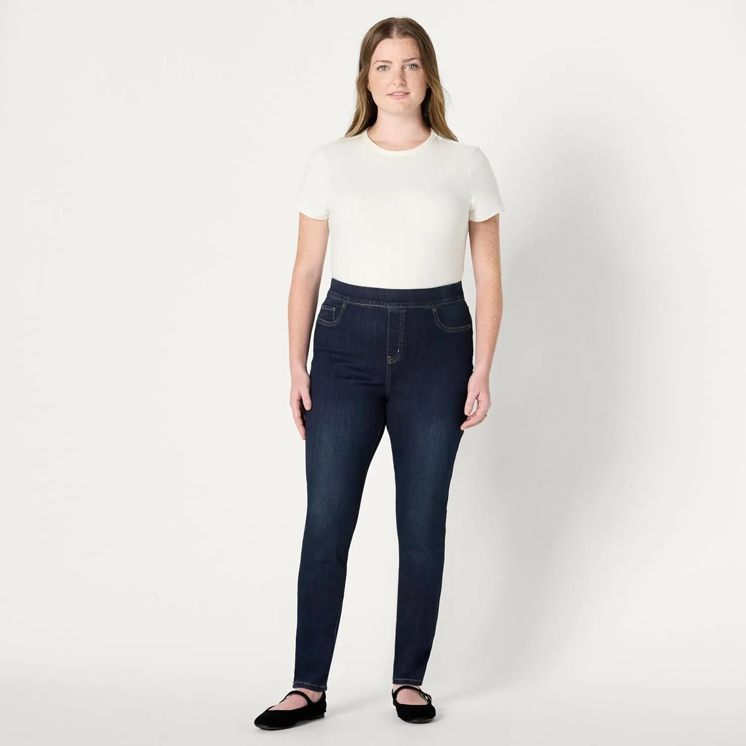 Зауженный крой со средней посадкой: облегающий силуэт в области бедер, ягодиц и ног. Сидит ниже естественной линии талии. Эластичные джеггинсы: мягкая и комфортная ткань, которая облегает фигуру и обеспечивает комфорт в течение всего дня. Джинсовые леггинсы без застежек: элегантный силуэт, идеально подходящий для путешествий, благодаря своей гибкости и свободе движений. ДЕТАЛИ: Широкий пояс без шнуровки с эластичной вставкой для комфорта. Имитация передних и задних накладных карманов придает джинсам аутентичный вид. Заклепки по углам передних карманов для дополнительной прочности. Длина внутреннего шва изделия: Предлагается в 3 вариантах длины — короткая 27 дюймов, стандартная 29 дюймов и длинная 31 дюйм, каждая с шириной штанины внизу 5 дюймов и высотой посадки спереди 10 дюймов для американского размера 6.