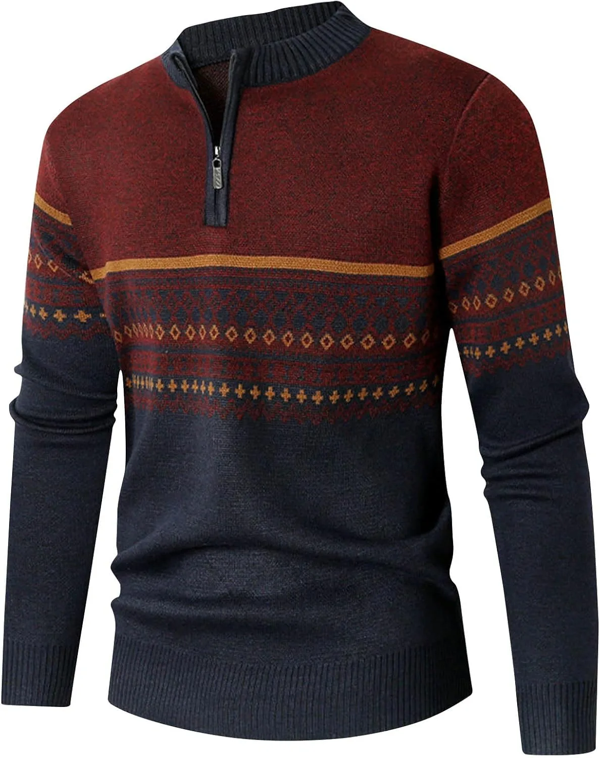Uillui Unisex Quarter Zip Pullover Sweater, Slim Fit, Vintage Stripes