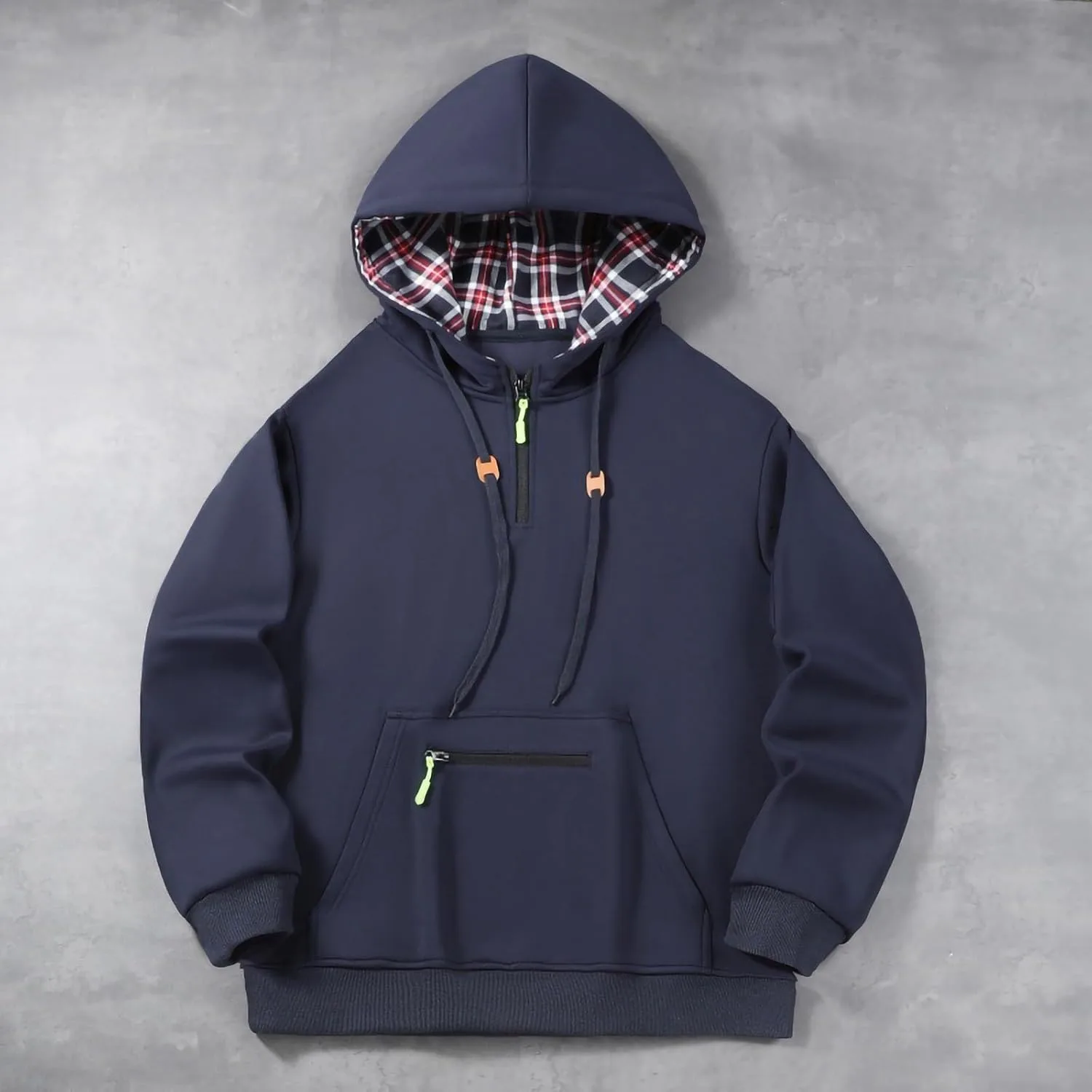 Мужские худи с застежкой-молнией на четверть длины: Частично застежка-молния спереди обеспечивает регулируемую вентиляцию и гибкие возможности для создания различных образов. Молния доходит до середины груди для удобной регулировки температуры во время различных видов активности. Эта модель сочетает в себе комфорт пуловера с практичной функциональностью одежды с застежкой-молнией спереди.