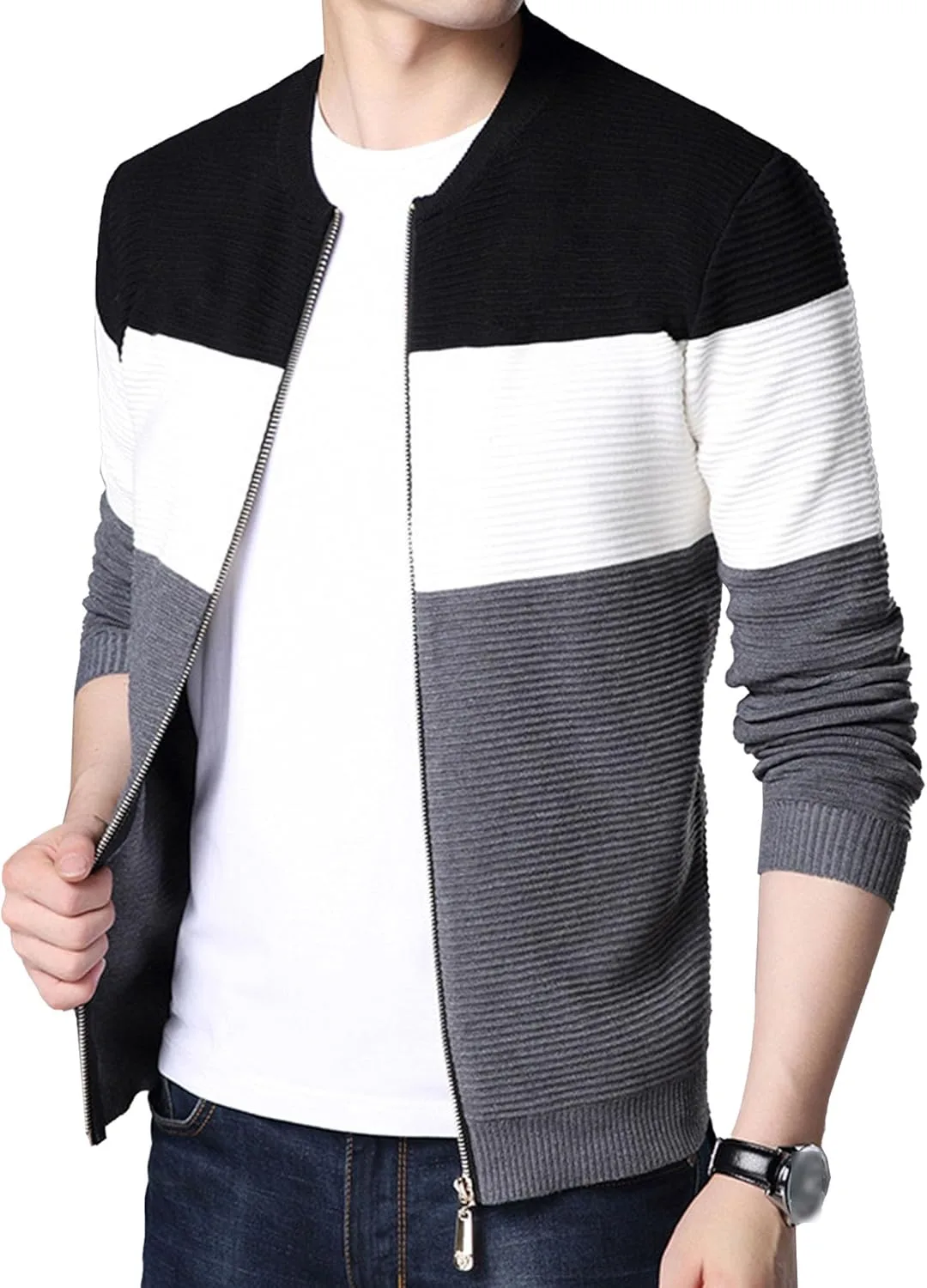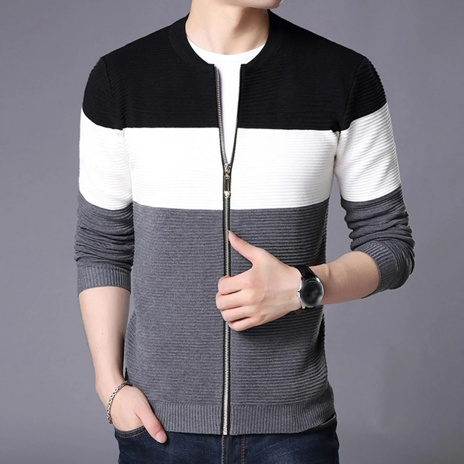 Кардиган мужской Patchwork Knit Thermal Slim Fit Full Zip