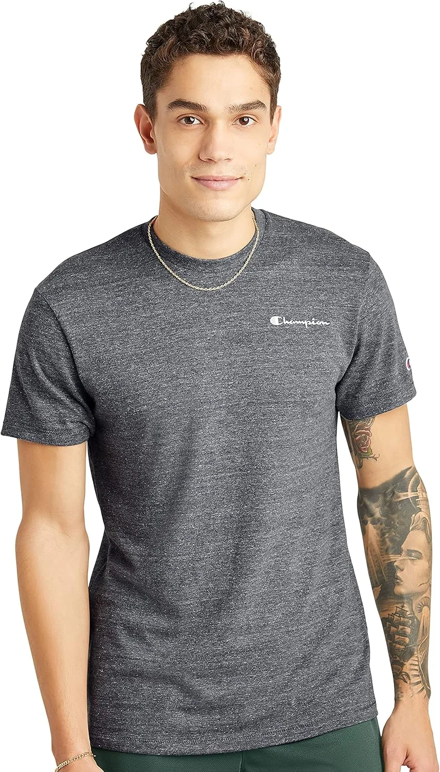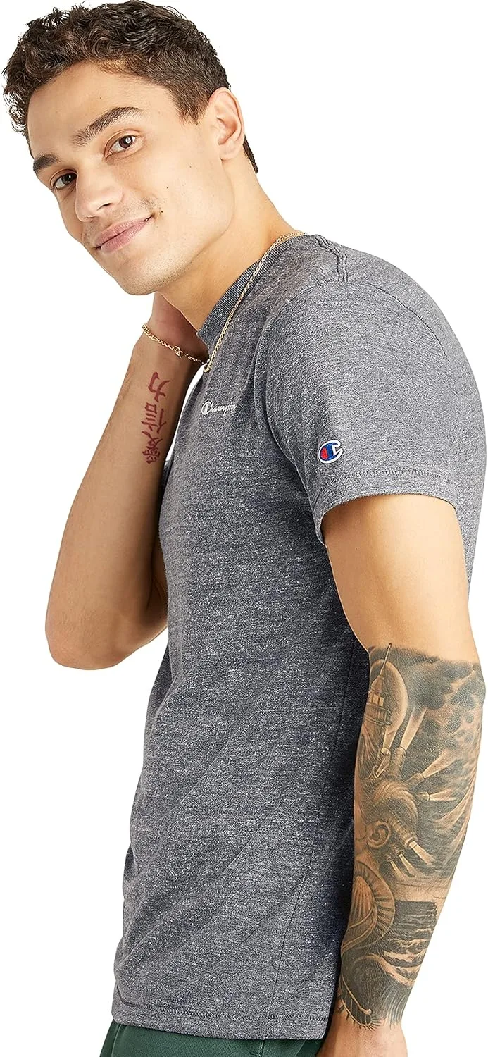 МЯГКИЕ ФУТБОЛКИ ДЛЯ ПОБЕДЫ. Мужская футболка Powerblend® приталенного кроя — это мягкая и удобная футболка, которую вы так долго ждали. Изготовленная из комфортной хлопковой смеси, эта футболка прослужит долго. Такие детали, как ребристый воротник и двойная строчка по всей поверхности, обеспечивают качественную посадку и невероятно мягкое ощущение. Благодаря своему элегантному и современному дизайну, эта футболка идеально подходит для любого случая. Независимо от того, надеваете ли вы ее нарядно или повседневно, это идеальное дополнение к вашему гардеробу. Классическая надпись расположена на груди, а культовый логотип C — на рукаве, создавая образ, достойный чемпиона.