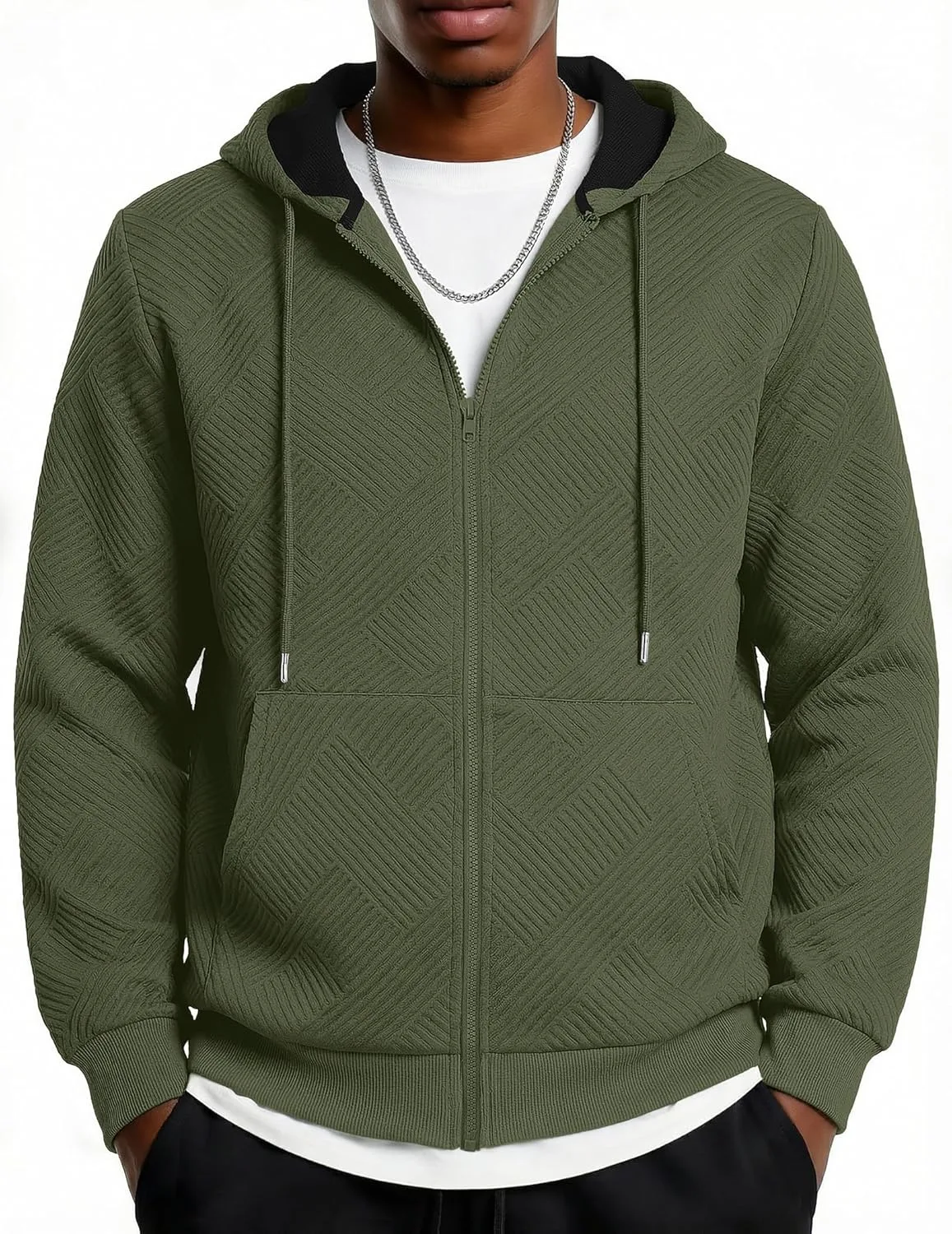 Стильная текстура: Наша мужская толстовка на молнии выполнена с использованием изысканной технологии стежки в форме буквы Z, а наполнитель из проволоки усиливает трехмерный эффект, что не только повышает теплоизоляцию, но и добавляет изысканности, придавая толстовке легкий, роскошный и модный вид в повседневной жизни.